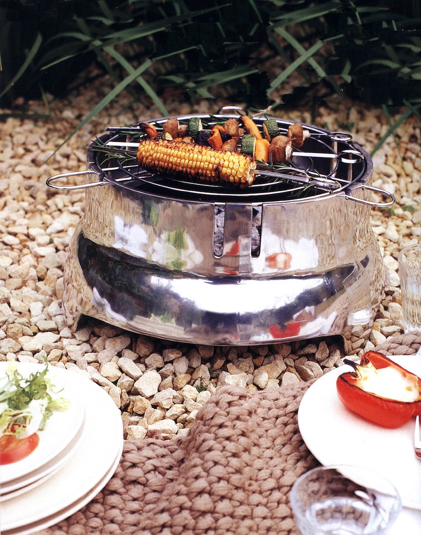 Applying my knowledge of designing and developing products for the fireplace industry, the Dune barbecue was designed to be an efficient fuel burner. Compact to carry to the beach or the patio, and robust enough to last many a happy summer of grilling. The base is cast in aluminum, with two cutaways allowing a stainless steel grill bar to be slotted into for low and high temperature cooking. The coal tray is made from steel and designed to be removeable to clear and release burnt coals.