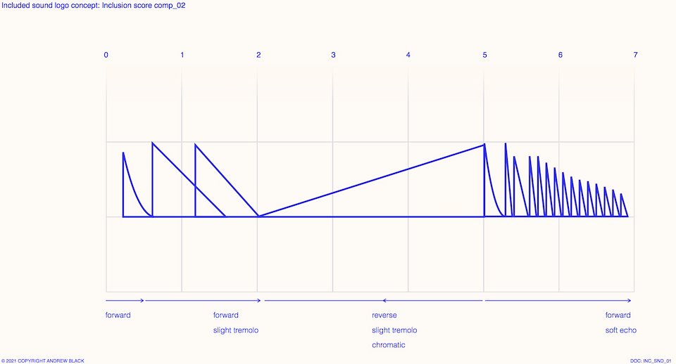 The elements chosen for included are based on a sound palette of 3 elements. Conceptually, one element for each syllable of the word [in- clu - ded]. These were developed and integrated into a sonic environment that gives a sense of space and atmosphere. Imagine a room tone where it feels warm but spacious.