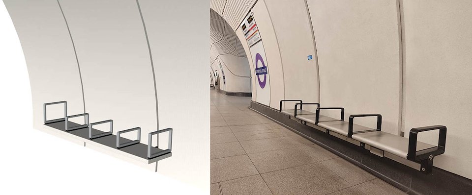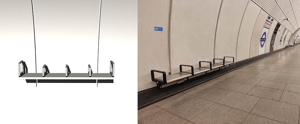 Actual bench in Elizabeth Line platform - 2022 (above & below right)